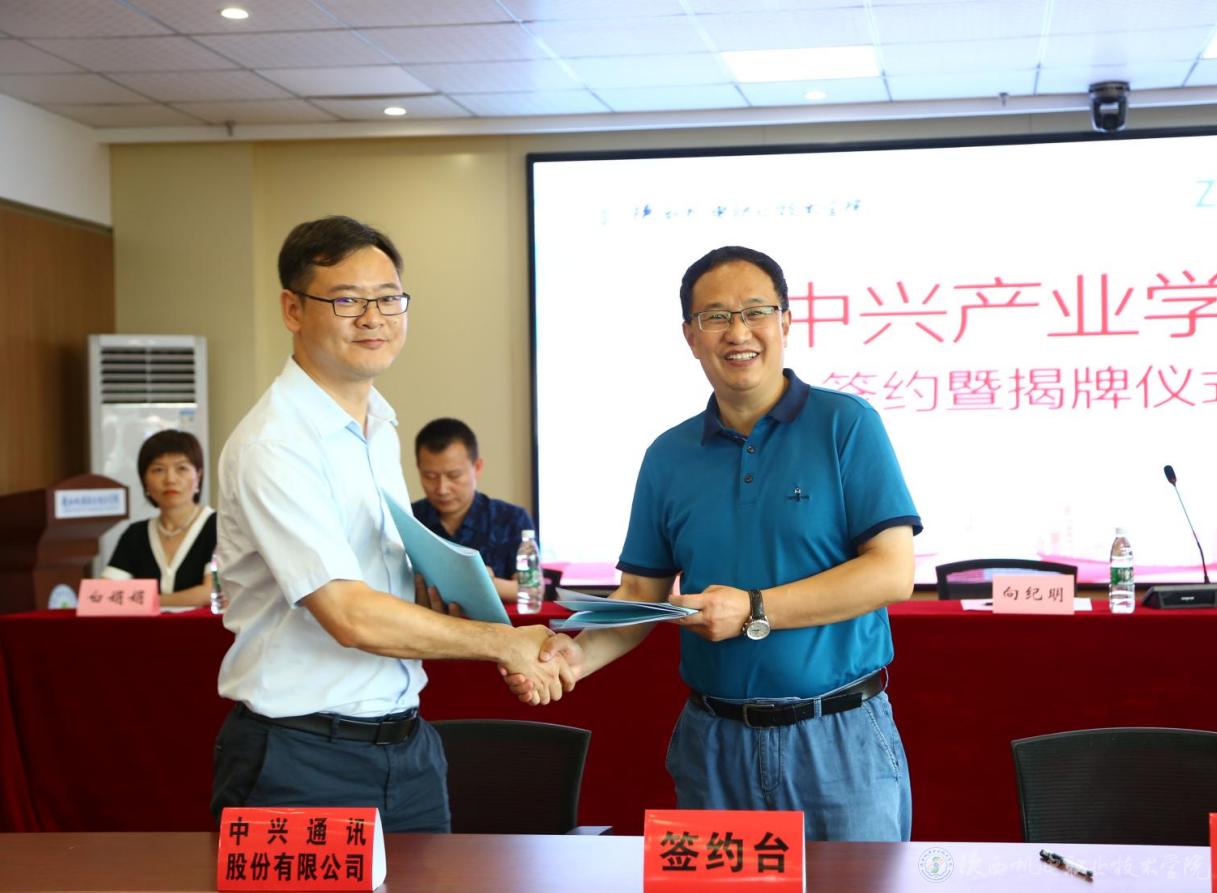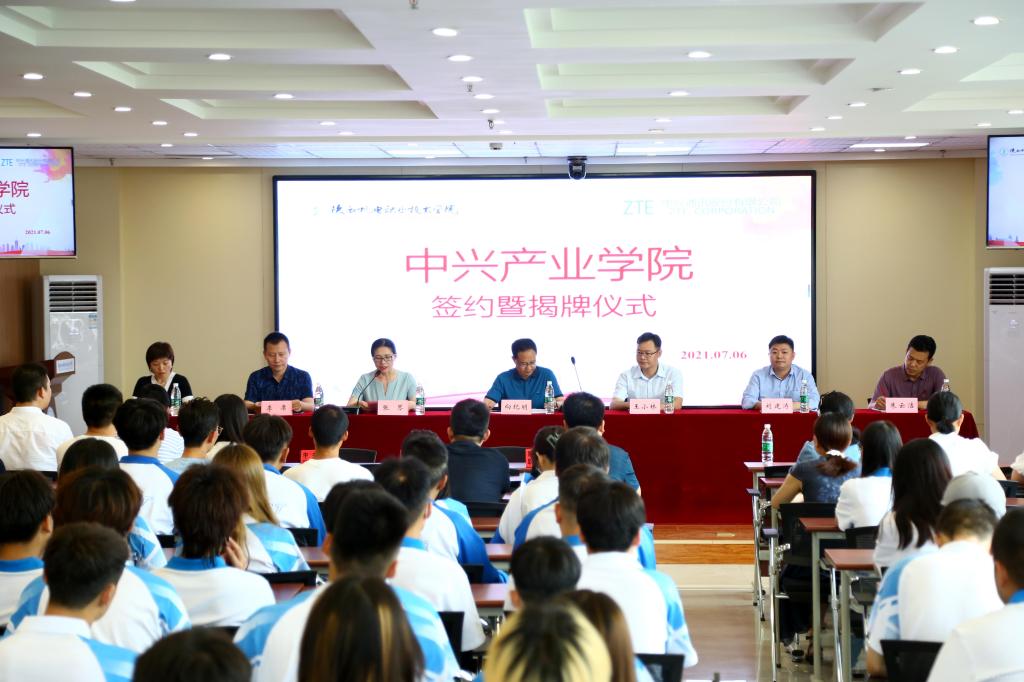 仪式上,王小林和向纪明共同签署“中兴产业学院”合作协议;王小林、张琴共同为“中兴产业学院”揭牌。