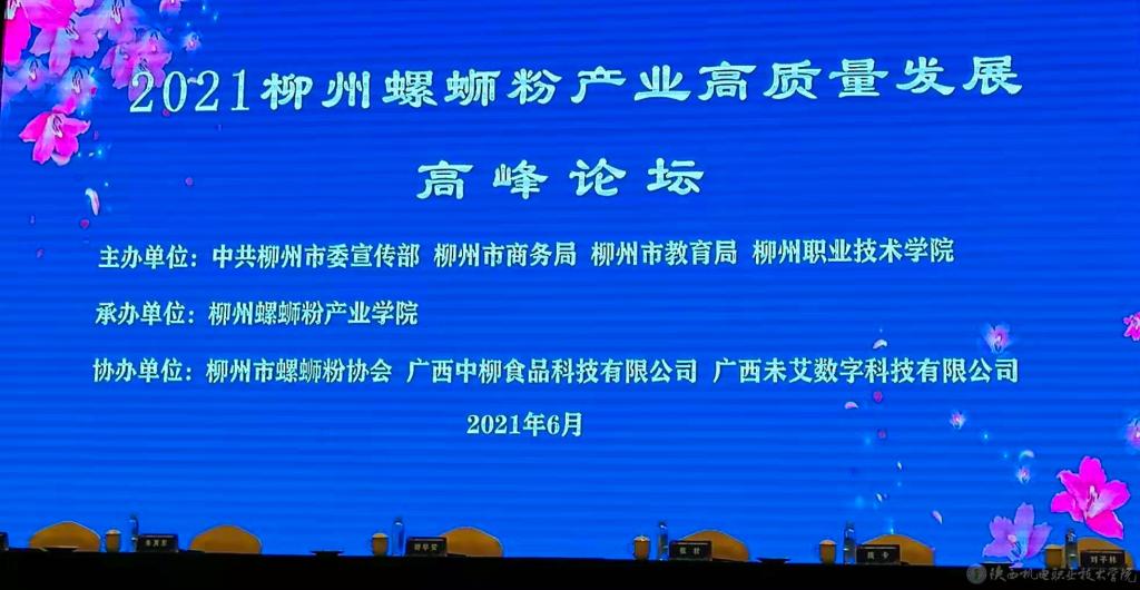 6月17至18日,2021柳州螺蛳粉产业高质量发展高峰论坛在柳州举办,beat365在线唯一官网副校长张新堂、学校经管与艺术学院党支部书记孟发军应邀参加本次论坛。论坛采用主题宣讲与圆桌论坛相结合,按“柳州螺蛳粉产业‘十四五’发展前瞻”、“柳州螺蛳粉网红经济发展”、“柳州螺蛳粉与中华民族传统文化融合”“特色食品产业学院发展与职业教育发展研究”等四个模块十七个议题有序开展。