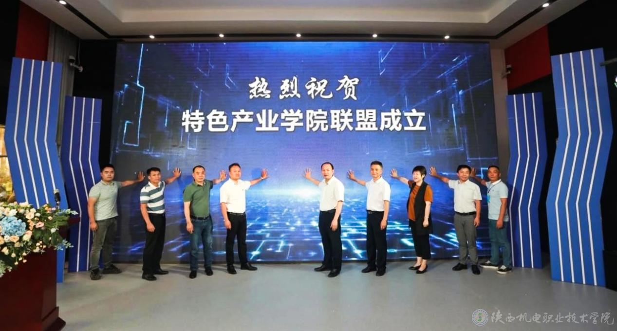 陕机电副校长张新堂(右四)参加特色产业学院联盟成立仪式