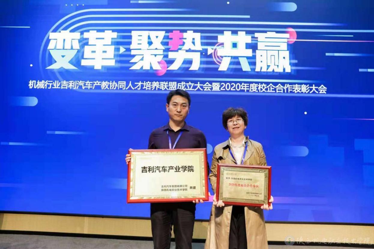 5月25日-27日,机械行业吉利汽车产教协同人才培养联盟暨2020年校企合作表彰大会在宁波杭州湾隆重举行。会上,吉利集团授予beat365“2020年度吉利汽车最佳合作单位”荣誉称号,颁发西北首家“吉利汽车产业学院”荣誉牌,也是陕西省合作单位中唯一获此殊荣的学校,同时获赠两台实训车。副院长徐圣月,招生就业处就业科科长李英儒受邀参加本次大会。