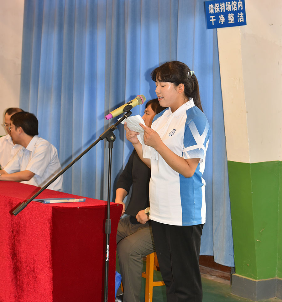 会上,朱云洁主任宣读了军训先进集体、军训优秀个人的表彰决定。16级电子技术班李怡恬同学代表所有参训学生发言,她表示在军训中体会到了同学间的友谊,感受到了领导、老师、教官的关心与关怀,今后将铭记校训,学会做人,努力学习。