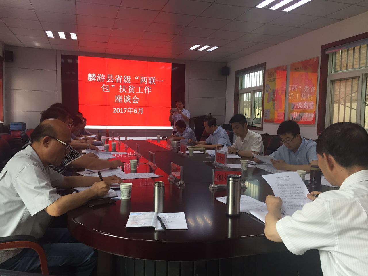2017年6月20日下午14:30在麟游县扶贫办脱贫攻坚指挥部(一楼会议室)召开了省级“两联一包”扶贫工作座谈会,我院工会主席张湛等一行两人参加。会上由麟游县扶贫办通报今年上半年“两联一包”工作,各参扶单位分别汇报了“两联一包”扶贫工作进展情况。
