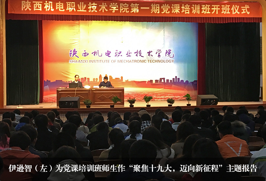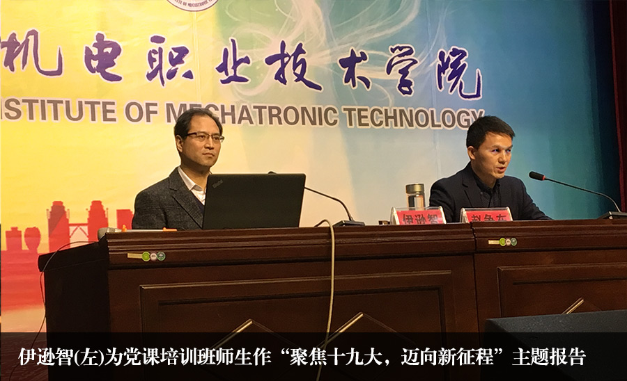 2017年11月28日下午,beat365在线唯一官网党委书记、院长伊逊智同志为学院第一期党课培训班师生作“聚焦十九大,迈向新征程”主题报告。报告会由学院党委委员、组织部部长、党政办主任赵争东同志主持。