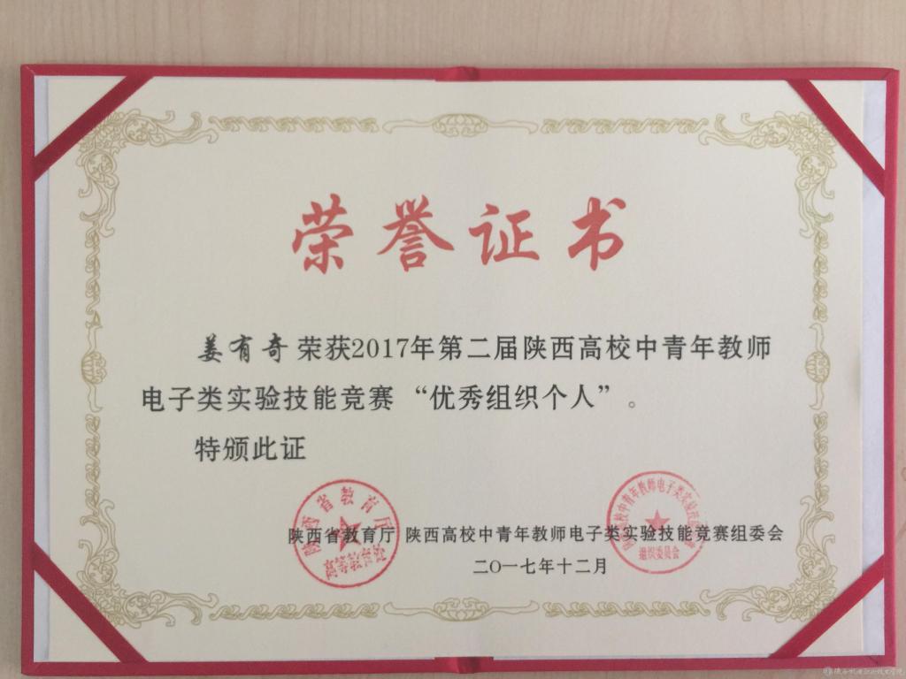 12月27日,第二届陕西高校中青年教师电子类实验技能竞赛颁奖大会在西安电子科技大学南校区隆重召开,代表我院参赛的电子工程系教师娄勇、史磊、仇瑶荣获团体二等奖,同时我院荣获优秀组织奖,电子工程系主任姜有奇荣获优秀组织个人。
