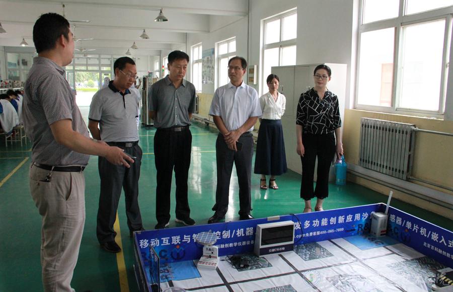 为推动现代学徒制试点工作的规范化、制度化,提高试点工作的质量和效益,6月21日,陕西省教育厅职教处副处长滚多海、教育部现代学徒制试点工作委员会专家惠均芳、张建文一行来beat365在线唯一官网检查调研现代学徒制试点工作。学院党委书记伊逊智、副院长张琴、电子工程系主任姜有奇、机电工程系主任白娟娟等陪同调研。