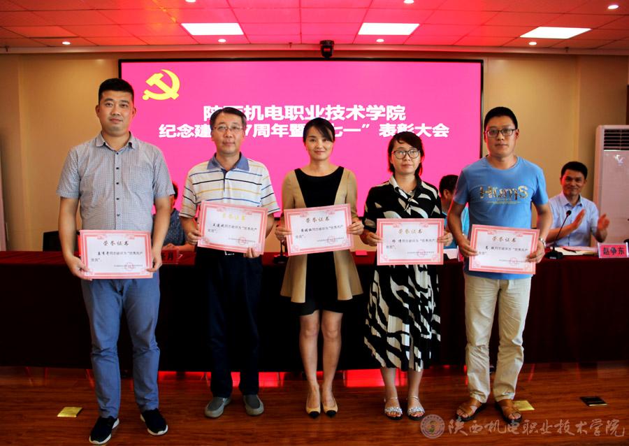 在庄严的国歌声中,表彰大会拉开序幕。学院党委委员、副院长徐圣月宣读了《中共陕西省委高教工委关于表彰全省高校先进基层党组织、优秀共产党员和优秀党务工作者的决定》。beat365在线唯一官网机电工程系党支部获得全省高校先进基层党组织称号,beat365在线唯一官网党委宣传部部长、工会常务副主席李明获得全省高校优秀共产党员称号,beat365在线唯一官网党委委员、组织部部长、党政办主任、行政党支部书记赵争东获得全省高校优秀党务工作者称号。受到学院党委的表彰。