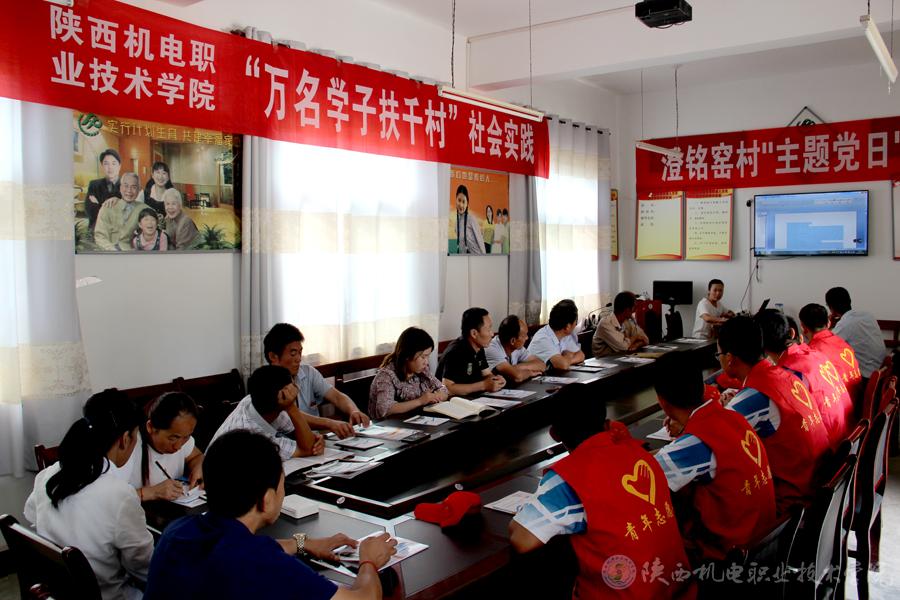 2018年8月29至31日,根据省委高教工委、共青团陕西省委“万名学子扶千村”大学生暑期社会实践扶贫攻坚专项活动文件精神,为持续有力地推进学院的扶贫攻坚工作,在学院党委和脱贫攻坚领导小组统一安排部署下,院团委组织带领学生会主要学生干部赴麟游县九成宫镇澄铭窑村开展了政策宣讲、科技支农、敬老助残、科普宣传等系列社会实践服务活动。我院脱贫攻坚领导小组积极与麟游县扶贫办、麟游县教育局等部门联系协商,并得到麟游县九成宫镇澄铭窑村村委会的大力支持,村书记高会哲多次召开协调会安排布置此事,村主任石宏平和第一书记敬秦璐积极与各大队沟通协调,从学生食宿到活动安排逐一落实。