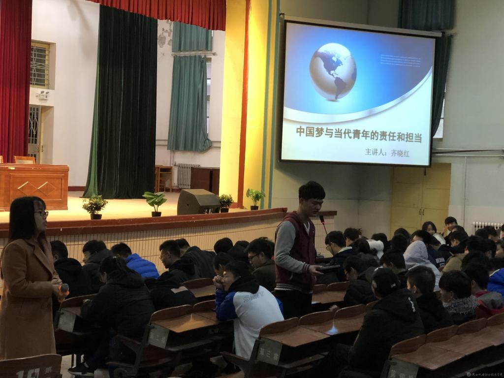 讲座中齐晓红通过游戏让学生说出自己心中的梦想,唤醒心中对梦想的渴求。通过观看习近平总书记在参观《复兴之路》展馆时的讲话视频和学生回顾和明确了中国梦的科学内涵。结合视频、图片、数据及当代青年学生的学习生活实际,生动、详细地阐述了新时代青年学生在中国梦实现过程中的价值和作用,号召我院青年学生,把握青春年华,学好专业本领,努力实现自己的人生梦想,也为中国梦的早日实现贡献自己的力量。