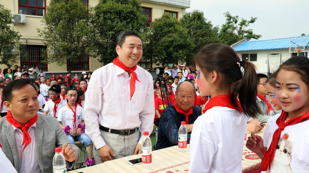 六年级的大孩子们为参加活动的领导和老师们佩戴上红领巾与同学们共同庆祝六一儿童节。邓新治代表学院祝同学们六一快乐,并希望同学们珍惜童年,享受童年,让歌声与微笑同在、祝福与快乐同行,让这美丽的童年成为孩子们成长过程中最美好的记忆。并勉励同学们要志存高远、脚踏实地,克服困难、自强自立,用真才实学回报家乡、回报社会。