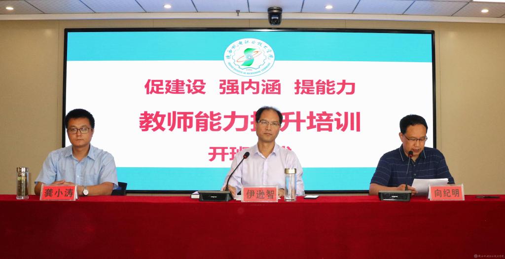 8月31日,学院在汽车机电大楼视频会议室举行“促建设、强内涵、提能力”教师专业能力提升系列培训开班仪式,党委书记伊逊智参加会议并讲话,仪式由党委副书记、院长向纪明主持。
