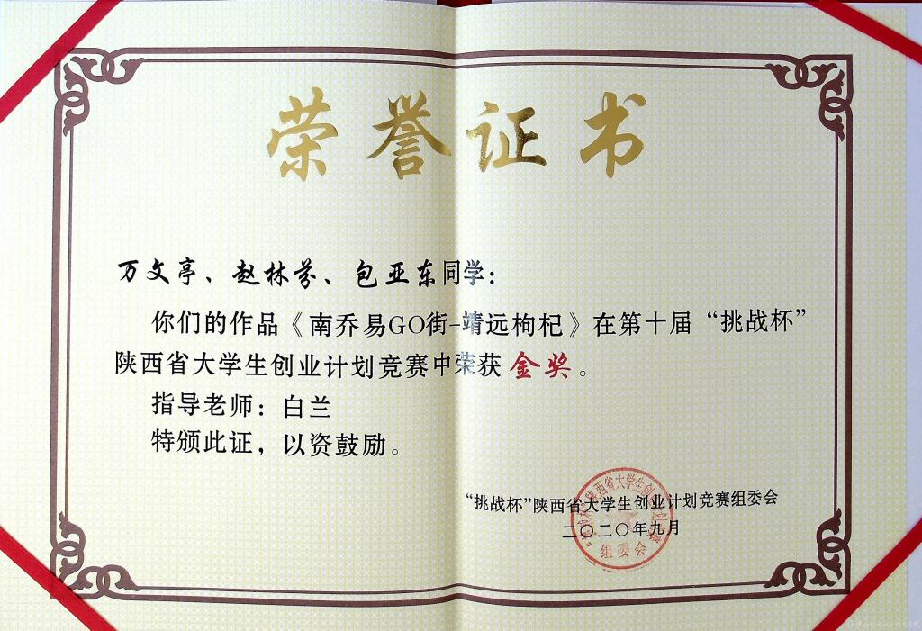 经过组委会专家评审,beat365学生万文亭、赵林芬和包亚东在白兰老师的指导下,参赛作品《南乔易GO街-靖远枸杞》获得省赛金奖,同时该作品也代表我省参加国家比赛;刘凯、赵卓越、巫开亮和姚顺迪在薛媛丽老师指导下,参赛作品《果蔬授粉“神器”》获得省赛铜奖。
