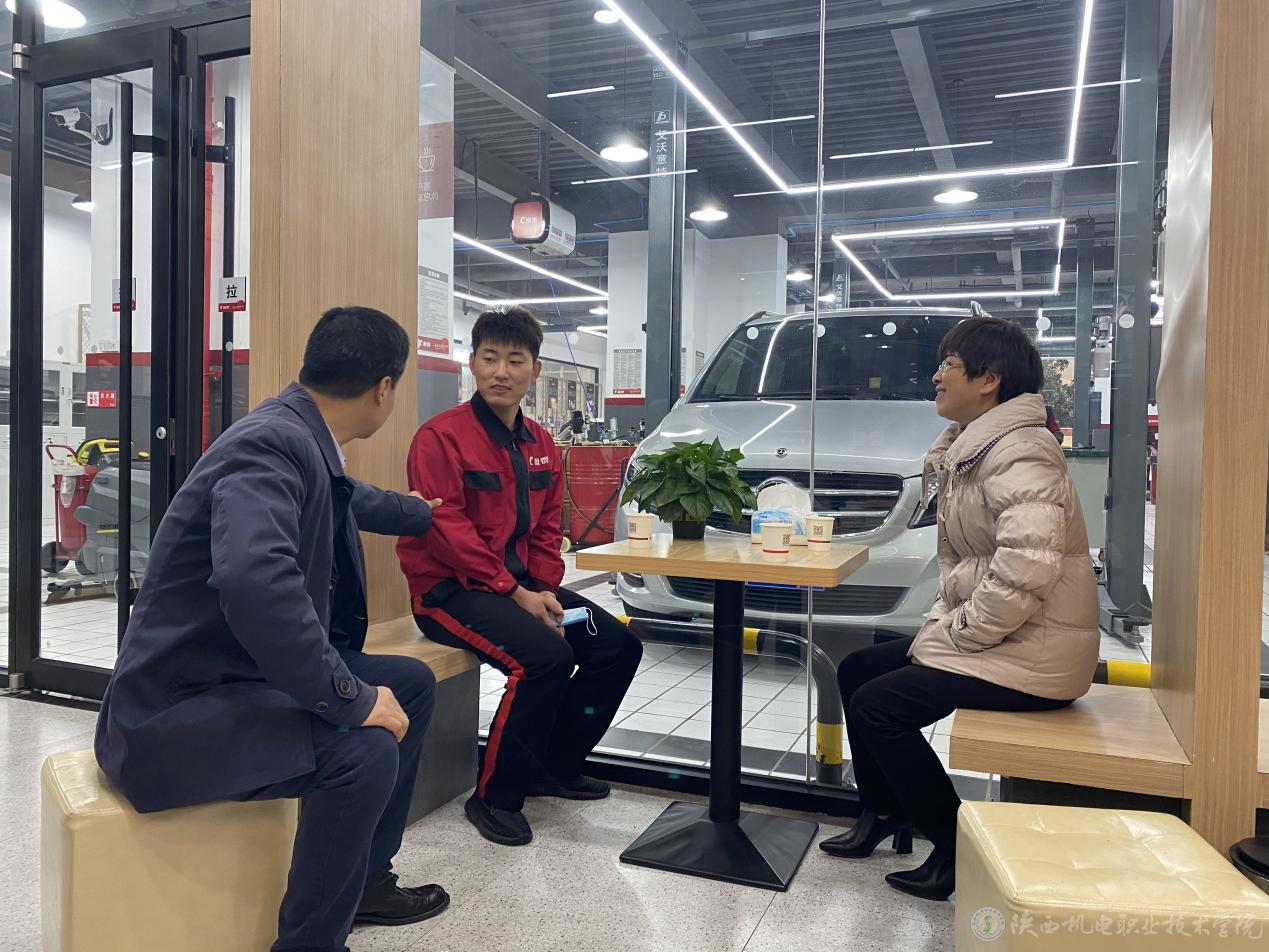 徐圣月一行先后赴北京恒安卫士保安服务有限公司(西安地铁四号线)、陕西中保安防服务集团有限责任公司、西安恒泰汽车服务有限公司等进行企业考察及就业回访工作。徐圣月每到一处,都要积极联系学生,开展就业座谈,了解学生吃、住等情况,鼓励学生向企业师傅多学习,努力掌握专业技能,早日成为企业正式员工。