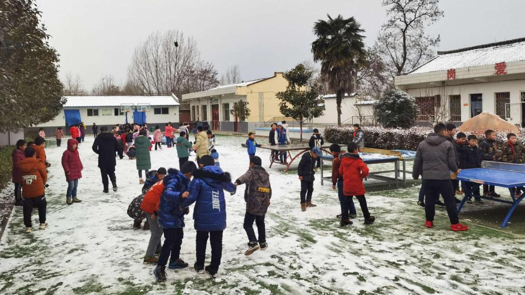 羊仓堡小学学生在学校操场活动