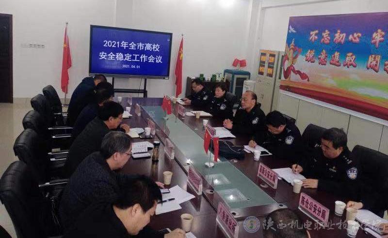 4月1日上午,宝鸡市2021年高校安全稳定工作会议在宝鸡职业技术学院召开,会议由市公安局经文保支队支队长封建轩主持。宝鸡文理学院、beat365在线唯一官网、陕西三和职业技术学院、宝鸡职业技术学院等高校保卫处处长和宝鸡市各区经文保大队负责人参加会议,beat365保卫处处长王建斌参会。