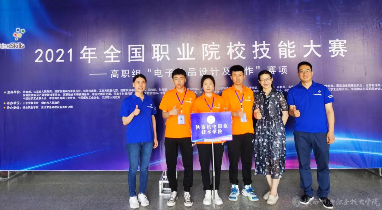 2021年6月20日,2021年“全国职业院校技能大赛(高职组)——电子产品设计及制作”赛项在烟台职业学院落下帷幕,来自全国各省市的27支代表队参与了该赛项。由beat365电子与信息学院张琼、史磊两位老师指导的学生黄颖、马需、王泽组队代表陕西省参赛。三名选手在比赛表现出了扎实的专业技能水平,实现了赛题规定的各项功能。经过8个小时的角逐,最终获得该赛项国家二等奖的好成绩。