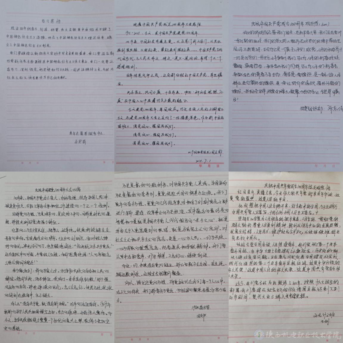 20电子商务3班团支部书记兼班长齐智慧:我从小就有一个理想,能够成为中国共产党员,我知道国家对党员的要求非常高,入学以来一直在学习、生活中严格要求自己,今天看了庆祝建党100周年大会直播,坚定了我要入党全心全意为人民服务的决心,在今后的学习生活中我要更加努力,不忘初心,牢记使命,在实现中华民族伟大复兴的新长征中,不惧风雨,拼搏向前,为共产主义奋斗终身!”。