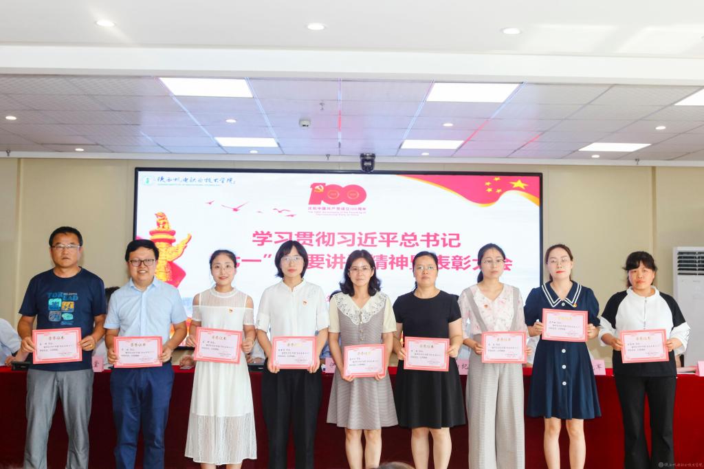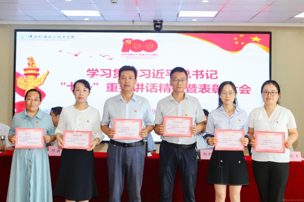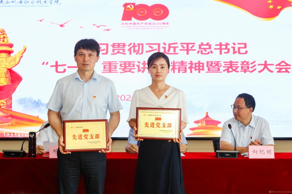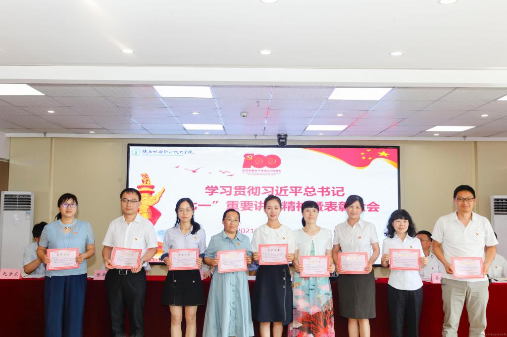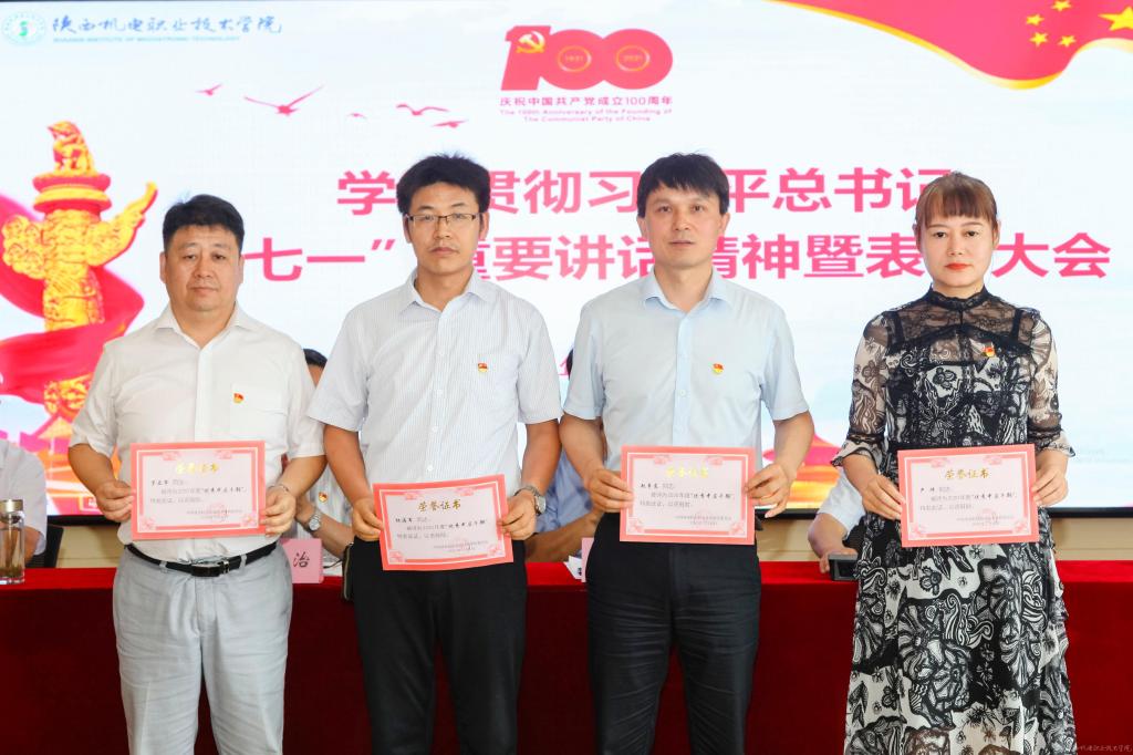 伊逊智代表学校党委,向受到表彰的先进集体、先进个人表示热烈的祝贺,对全校党员、干部和教职员工的辛勤付出和勤奋工作致以崇高的敬意和衷心的感谢。同时,提出三点工作要求和殷切希望:一是讴歌党的丰功伟绩,永远感党恩、听党话、跟党走;二是强化党员身份意识,增强使命感、责任感、事业心;三是跟上职教发展形势,坚持抓党建、优管理、促发展。他希望全校党员、干部和教职员工以党的百年华诞和党史学习教育为新的契机,深入学习贯彻习近平总书记在庆祝中国共产党成立100周年大会上的重要讲话精神,以落实立德树人根本任务和办好人民满意的职业教育为主线,以争创省级智能制造特色“双高”院校为目标,以抓好党建为引领,以优化管理为支撑,以教学改革为抓手,携手同心、再鼓干劲,奋力前行、筑梦圆梦,推动学校事业在“扩规模、提质量、创特色、树品牌”的新征程上取得新成绩、铸就新辉煌!