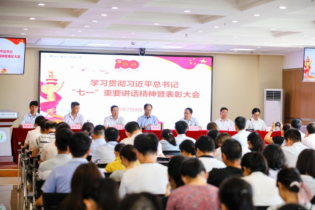 邓新治宣读《关于庆祝建党100周年暨表彰“先进党支部”“优秀共产党员”“优秀党务工作者”的决定》并为获奖集体和个人颁奖。