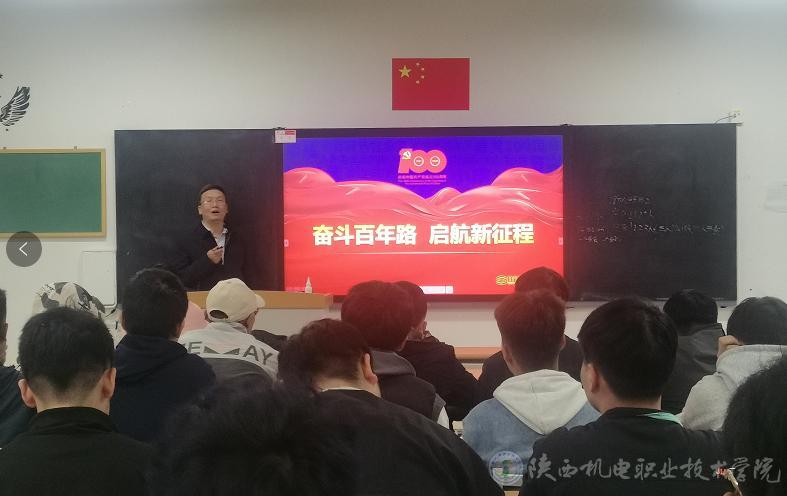 10月8日下午,党委副书记、纪委书记齐晓军在博学楼317教室为21机电技术1、2合班90余名学生上形势与政策课,讲授《奋斗百年路,启航新征程》专题内容。
