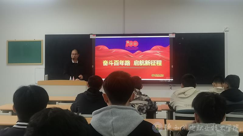 10月8日下午5-6节课,学院党委书记伊逊智在博学楼313教室为21机械制造、21数控技术、21智能制造、21工业机器人合班120余名学生上形势与政策课,讲授《奋斗百年路,启航新征程》专题内容。