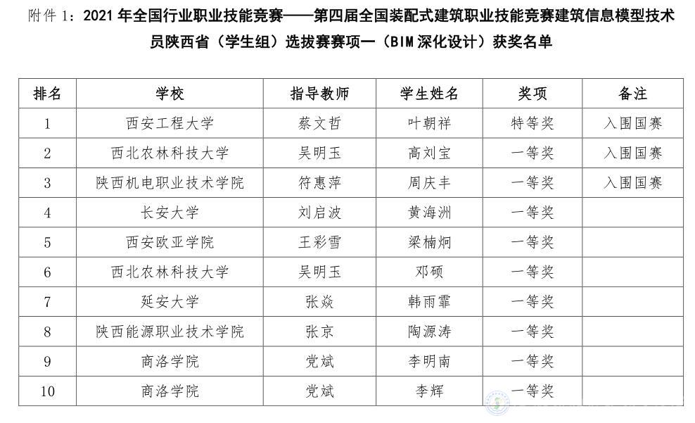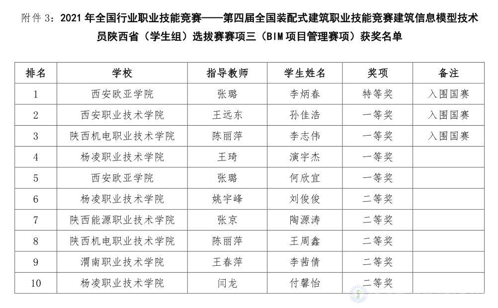 由陕西省建设教育协会主办、beat365在线唯一官网承办,杭州品茗安控信息技术股份有限公司、廊坊市中科建筑产业化创新研究中心协办的2021年全国行业职业技能竞赛一第四届全国装配式建筑职业技能竞赛(学生组)陕西省选拔赛于2021年10月22日在线上隆重举行。大赛共分为BIM深化设计,BIM投标应用,BIM项目管理三个模块。我院派出符惠萍、张悦、陈丽萍三个老师分别辅导三名学生参加三个模块的比赛,与来自全省28所本、专科院校,265名选手进行了激烈角逐。