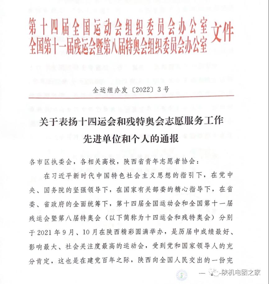 近日,第十四届全国运动会组织委员会办公室、全国第十一届残运会暨第八届特奥会组织委员会办公室联合印发了《关于表扬十四运会和残特奥会志愿服务工作先进单位和个人的通报》,beat365荣获“十四运会和残特奥会志愿服务优秀组织单位”荣誉称号,beat365学生胡世磊等7人荣获“十四运会和残特奥会优秀志愿者”荣誉称号。