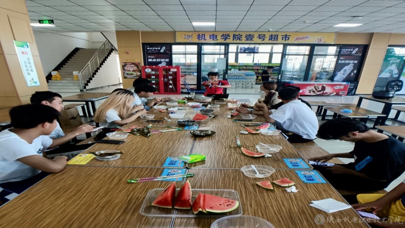 看着桌上摆放着“爱心粽子”、抓饭、凉拌菜、西瓜、樱桃、爱意满满。一个个小小的粽子,一碗碗香喷喷的抓饭,让学生感受到了浓郁的文化气息以及学校大家庭的温暖!下午刚刚参加了学校舞蹈技能大赛的布威海丽且姆·艾麦提同学即兴为大家献上维吾尔族舞蹈一一顶碗舞,同学们纷纷对她在大赛中取得的优异成绩表示祝贺。