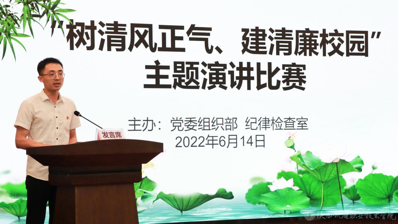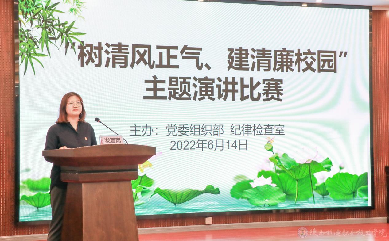 作为“廉洁文化宣传教育月”系列活动之一,本次演讲比赛是学校廉洁教育方法的又一次创新,比赛中各位教师党员的精彩表现,是beat365廉洁文化宣传教育活动取得实效的生动体现。树清风之正气,建清廉陕机电,此次比赛的圆满举办,促使每一位教师党员争做廉洁文化的学习者、实践者、传播者,植廉于心,践廉于行,让廉洁清风吹遍学校的每一个角落。
