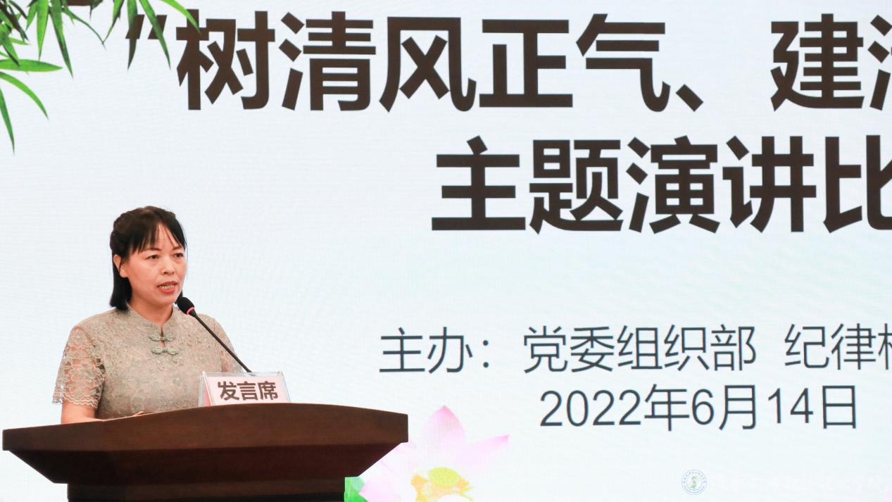 为深入推进廉洁文化宣传教育月活动,进一步在全校范围内营造说廉、倡廉、崇廉的文化氛围,2022年6月14日下午,党委组织部、纪律检查室在蟠龙校区博学楼视频会议室举办了“树清风正气、建清廉校园”主题演讲比赛。党委书记伊逊智,党委副书记、纪委书记齐晓军,党委委员、副院长张新堂,党委委员、副院长张克,校级督导徐圣月,党委委员、院长助理赵争东莅临大赛现场。各党支部书记担任此次比赛的评委,来自各支部推荐的17名党员代表参加比赛。比赛由党委组织部综合科科长张玉琼主持。