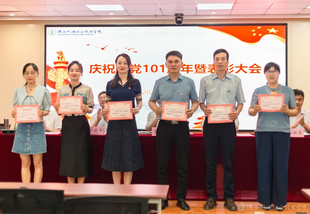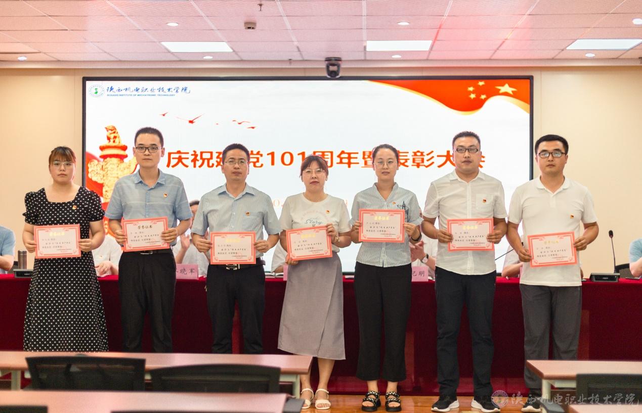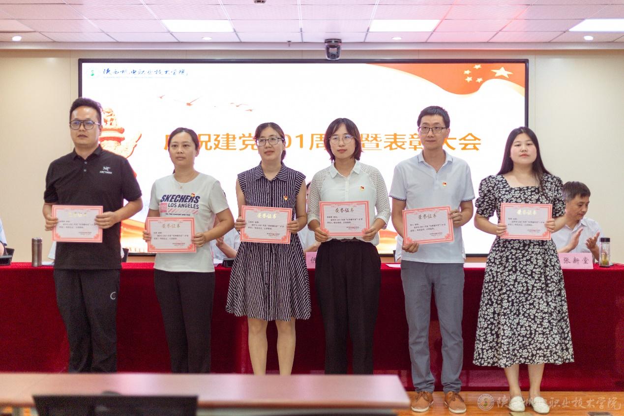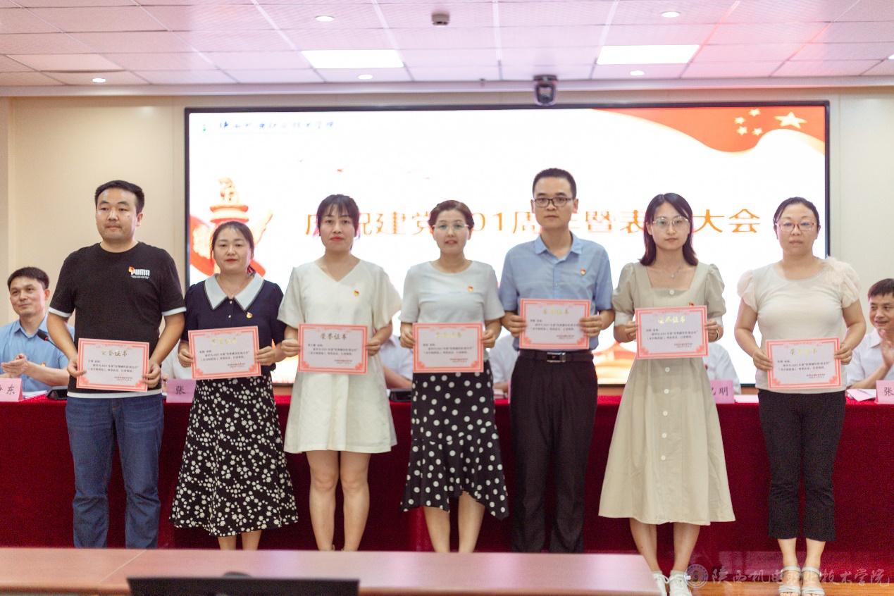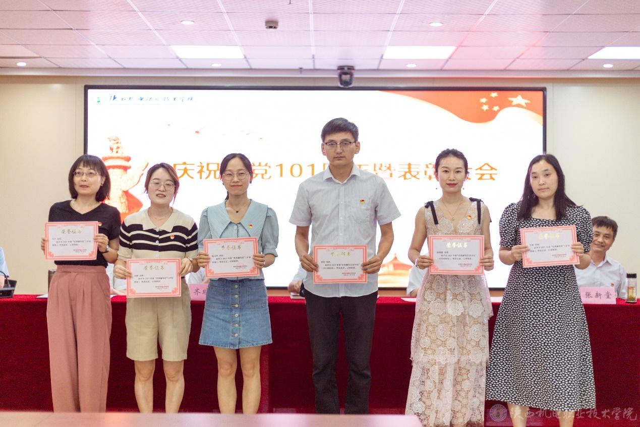 副院长张新堂宣读《关于庆祝建党101周年暨表彰“先进党支部”“优秀共产党员”“优秀党务工作者”的决定》并向3个先进党支部、32位优秀共产党员、以及14位优秀党务工作者颁奖。