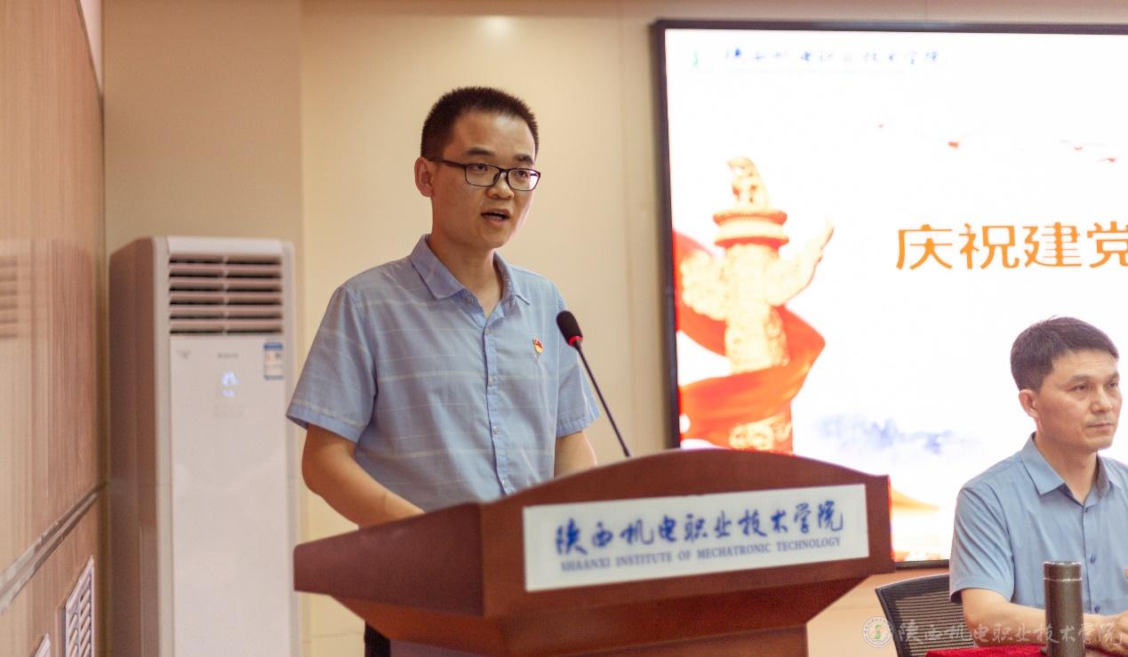 随后,优秀党员代表李鹏老师发言,他表示将继续传承和发扬好机电人艰苦朴素、敢打硬仗、奋勇争先的优良作风,切实发挥党员教师的模范带头作用。一要坚定理想信念,不断学习提升。二要立足本职工作,主动担当作为。三要勇于攻坚克难,不断开拓进取。作为学校的一份子,发挥主人翁意识,在学校党委的正确领导下,团结一致,凝心聚力,强化共同体意识,着力打造机电发展共同体、命运共同体、奋斗共同体,保持永不懈怠的精神状态和一往无前的奋斗姿态,以“踏平坎坷成大道,斗罢艰险又出发”的顽强意志,一步一个脚印的把beat365建设成为特色鲜明的高水平职业院校,以崭新的成绩迎接党的二十大胜利召开!