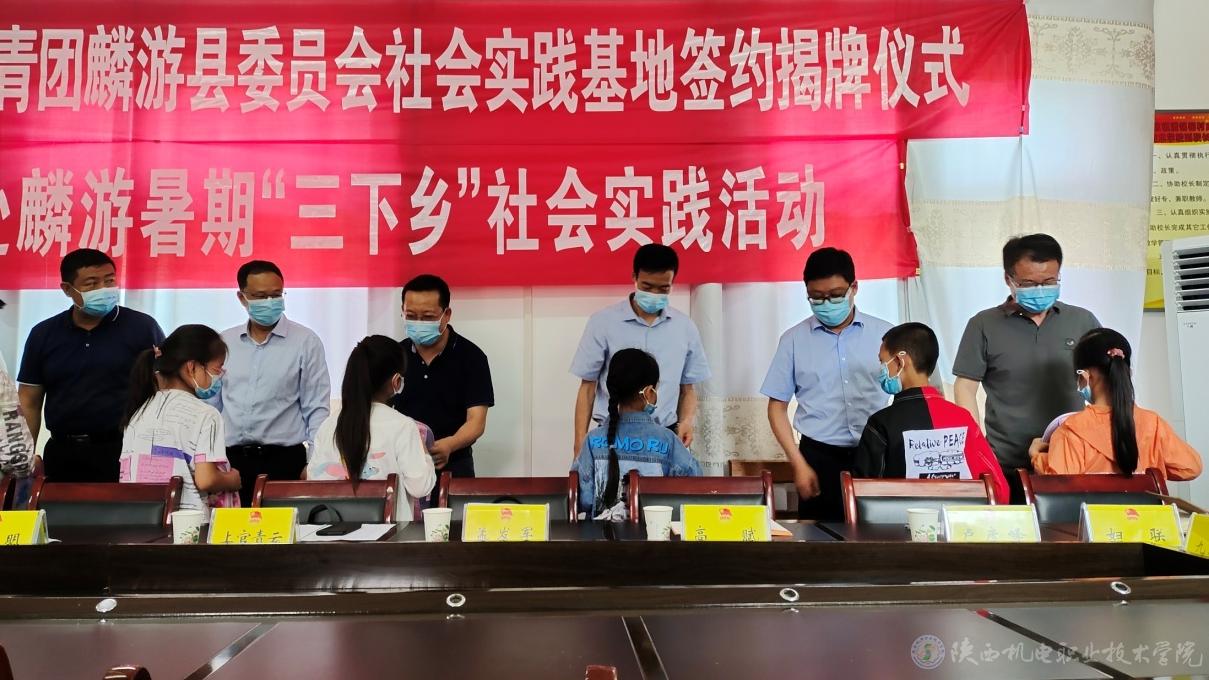接着,杨鹏介绍了此次社会实践活动的内容和形式,希望在今后的社会实践过程中对青年学生起到引导和帮助作用,上好与现实相结合的“大思政课”,并与共青团麟游县委签订大学生社会实践基地协议。