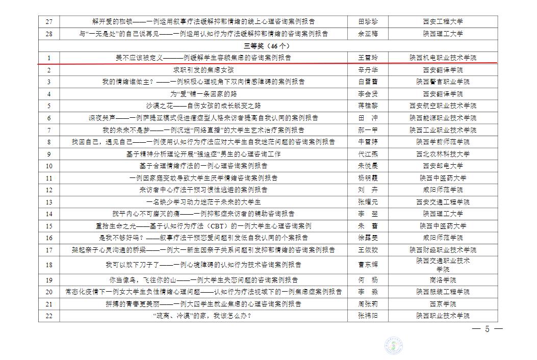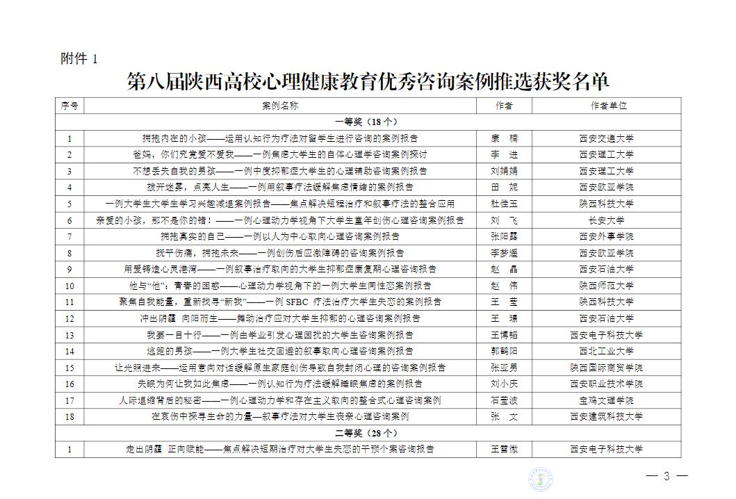 第八届陕西高校心理健康教育优秀咨询案例推选中,beat365教师 王雪玲、屈娜 分获 三等奖。