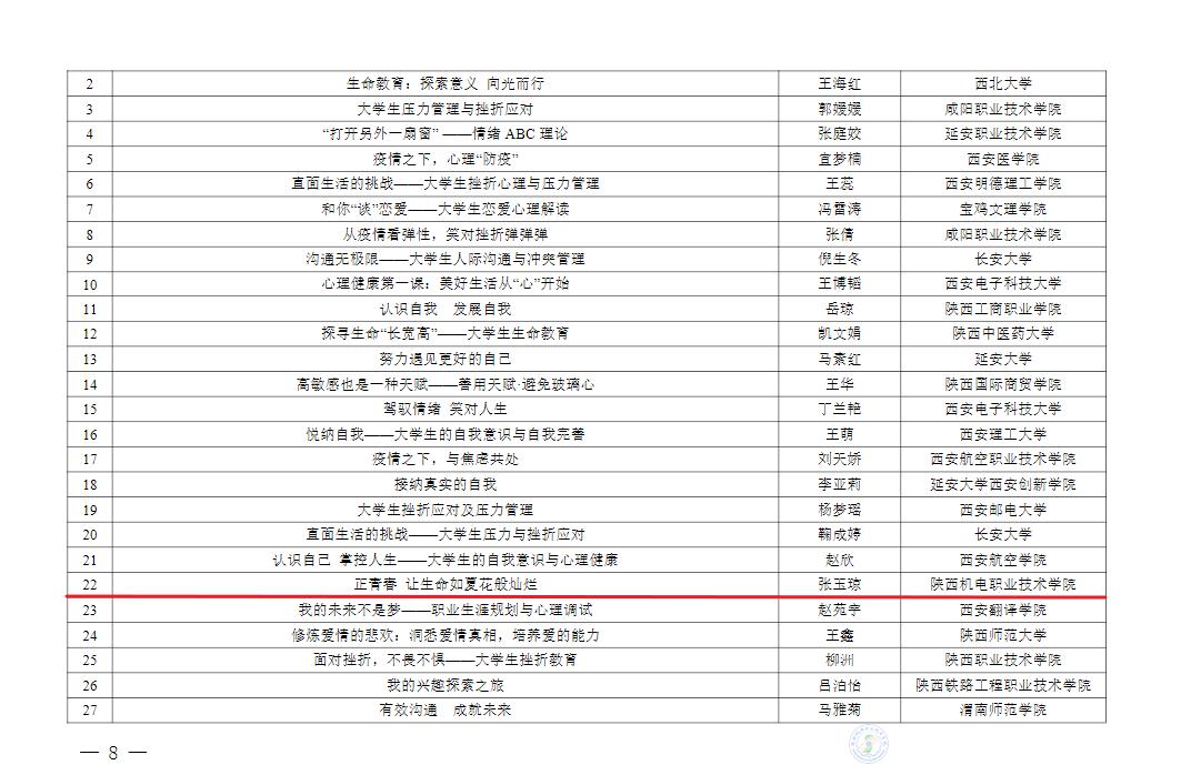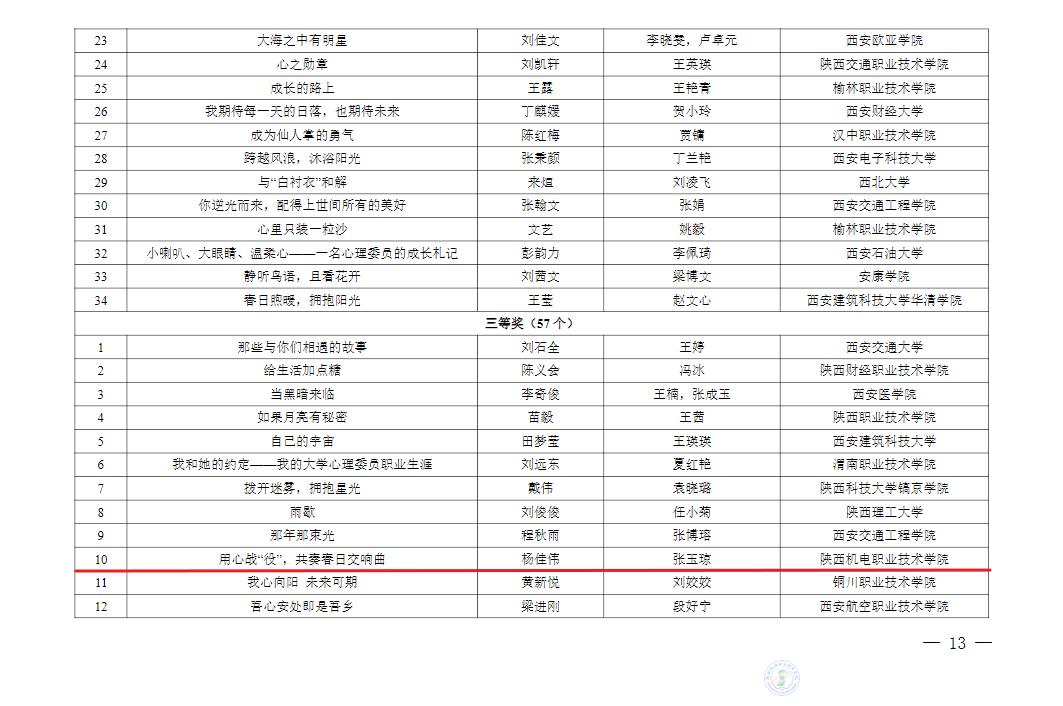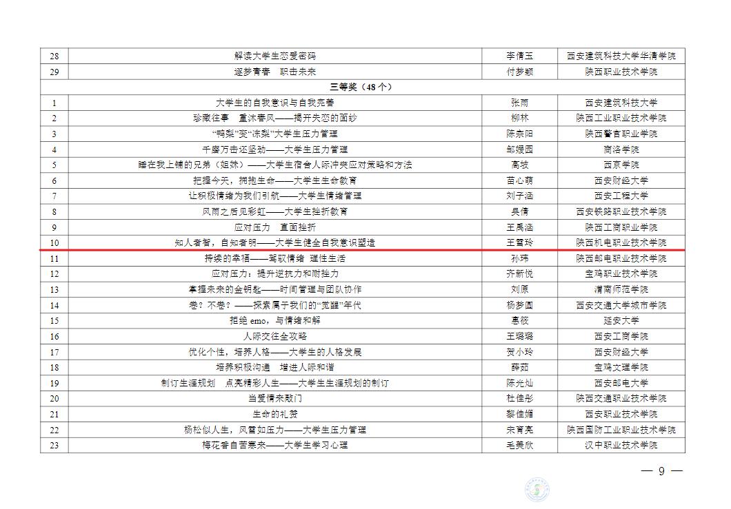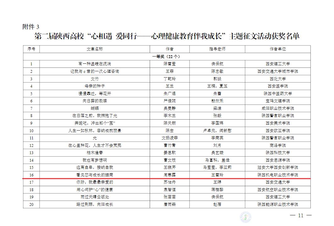 热烈祝贺陕机电青年教师及学生在陕西省第七届高校“阳光护航”心理育人宣传季省级有关活动中获得优异成绩。