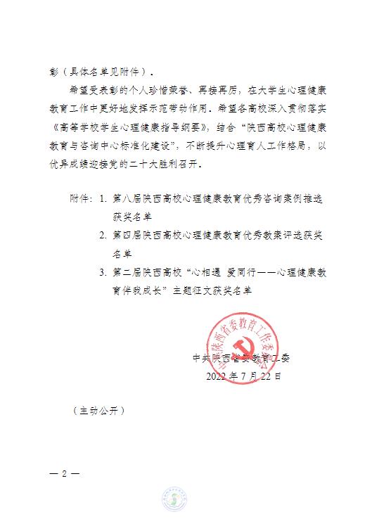 附件1: 第七届陕西高校“阳光护航”心理育人宣传季省级获奖情况通告 原文