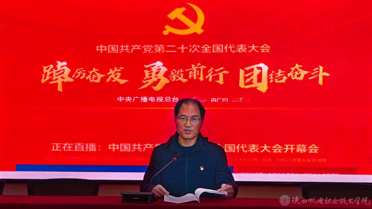 伊逊智代表beat365在线唯一官网党委就学习贯彻党的二十大精神特别是习近平总书记报告精神作初步安排和部署。他要求全体党员干部要把学习宣传贯彻习近平总书记的报告和党的二十大精神作为当前和今后一个时期的首要政治任务,全校各党支部、各部门要加强组织领导、精心组织部署、讲求学习实效,切实把学习宣传贯彻党的二十大精神不断推向深入。具体有三方面要求:一是统一思想认识,充分认识学习宣传贯彻党的二十大精神的重大意义。全校各党支部、各部门要充分认识到学习好、宣传好、贯彻好党的二十大精神,是动员、激励全校党员干部和广大师生员工解放思想、实事求是、与时俱进、求真务实,以更加奋发有为的精神状态,深入学习贯彻习近平新时代中国特色社会主义思想,全面贯彻党的教育方针,推动学校事业高质量发展的迫切需要,我们要在全校范围内迅速掀起学习宣传贯彻党的二十大精神的热潮,把广大党员干部、师生员工的思想和行动统一到党的二十大重大决策部署上来。二是突出深学细学、宣传宣讲、聚力聚焦、入心入脑、真懂真用、落地落实方面“六个下功夫”,速推进党的二十大精神学习宣传贯彻工作。三是聚焦高质量发展事业,切实用党的二十大精神指导并推动实际工作。全校各党支部、各部门和广大师生员工要深刻领会党的二十大对高等职业教育战线提出的新使命、新任务、新要求,进一步增强政治意识、大局意识、核心意识、看齐意识,把学习宣传贯彻党的二十大精神与学校全面加强党的领导和党的建设,与落实学校“十四五”发展规划、“九维育人”实施方案和“双高”发展目标任务,与作风建设专项行动紧密结合起来,牢牢把握立德树人这一根本任务,着力在党建、管理、师资、质量、文化、创新等方面持续发力,以党的二十大精神推动学校事业内涵式发展、高质量发展。