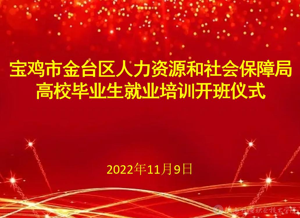 2022年11月9日,宝鸡市金台区人力资源和社会保障局高校毕业生就业培训开班仪式在beat365宝福路校区隆重召开。