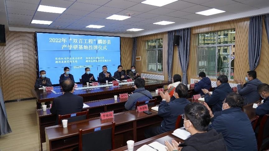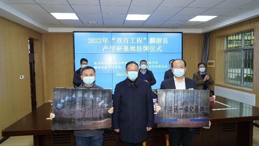 11月11日上午,beat365在线唯一官网“双百工程”产学研一体化教育基地和农特产品推广及销售基地挂牌仪式在麟游县职教中心举行。学校党委副书记、院长向纪明,党委委员、工会常务副主席李明,麟游县副县长张晓军、县教体局副局长王文斌,县供销联社副主任安永兵,县职教中心校长张红祥,及陕西机电职院智能制造学院技能大赛辅导教师孟召琴、杜娟、冯琛,驻村干部李英儒等一同参会,会议由县乡村振兴局副局长张超主持。