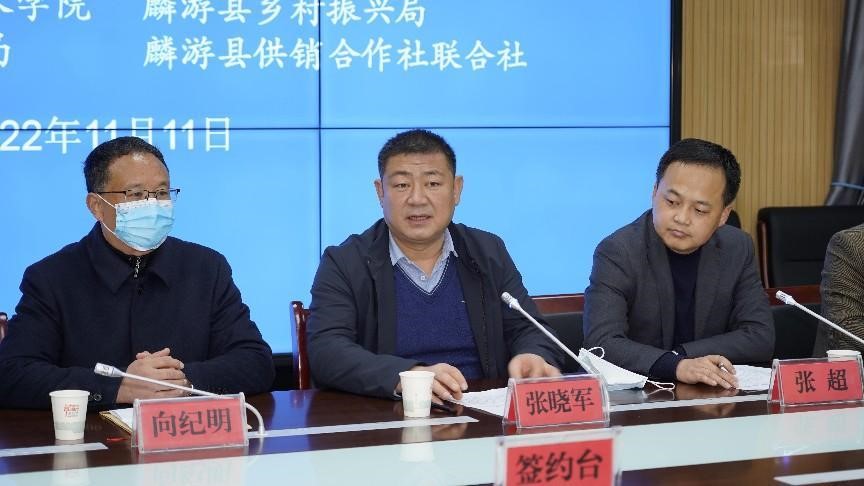 张晓军代表麟游县政府致辞,感谢beat365在线唯一官网发挥高校在科技人才资源等方面的优势,认真贯彻中央省市关于高校结对帮扶,脱贫攻坚的指示精神,连续多年派驻专人深入麟游县九成宫镇澄铭窑村,帮扶农民发展产业,于县供销联社采购麟游县的农副产品,深入职教中心开展职业技能培训,指导中职学校发展等一系列的活动,大力推进了麟游县经济的高速发展。