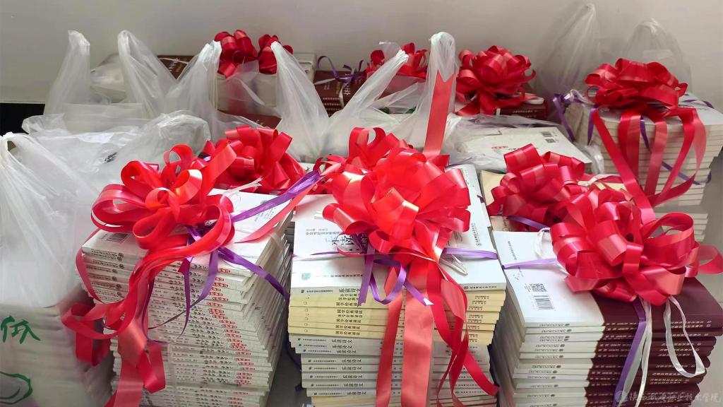 李明代表学院向麟游县职教中心捐赠图书380余册。