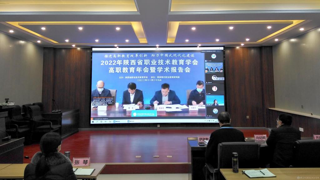11月29日,“2022年陕西省职业技术教育学会高职教育年会暨学术报告会”在咸阳以线上的方式举行,报告会的主题为“推进高职教育改革创新 助力中国式现代化建设”。陕西省教育厅副厅长高岭出席并发表重要讲话,职业教育与成人教育处处长付仲锋出席。陕西工业职业技术学院院长、西部现代职业教育研究院院长刘永亮致辞。此次报告会由陕西省职业技术教育学会主办、西部现代职业教育研究院承办。开幕式由学会会长崔岩主持。