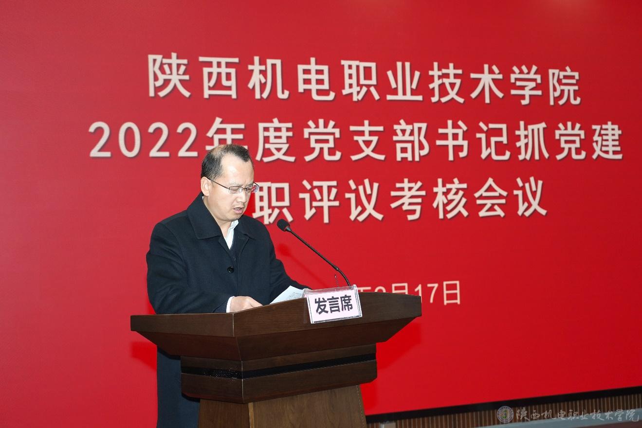 党委委员、院长助理、党委组织部部长赵争东通报了学校各党支部2022年度“三会一课”等制度落实情况及各二级学院2022年度发展党员情况,并就2023年落实“三会一课”等基层党建基本制度、党建活动开展、党建工作考核等进行了安排部署。