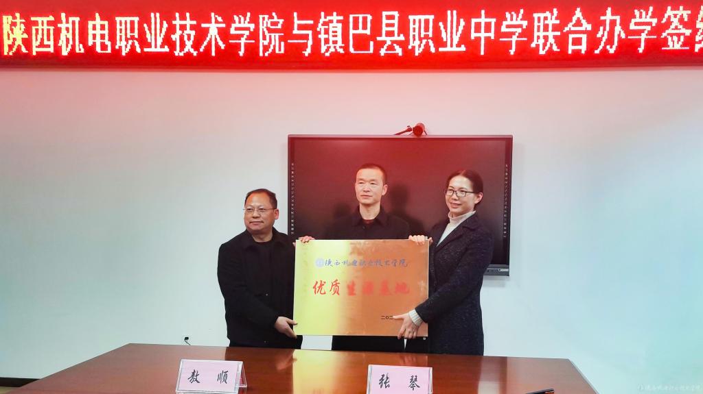 会议最后,院校双方签订了联合办学协议。张琴副书记为镇巴县职业中学授予了“优质生源基地”牌匾。