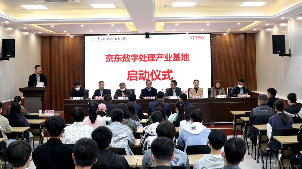 3月14日下午,beat365在线唯一官网“京东数字处理产业基地”启动仪式在beat365在线唯一官网蟠龙校区成功举行。参加本次启动仪式的政府代表有宝鸡市数字经济局副局长任海成、宝鸡市经济合作局二级巡视员索双海;企业代表有京东校园馆运营中心总经理万昌昌、京东校企合作大区经理郭洲丞、京东区域运营公司代表周通。学校党委副书记、院长向纪明、党委副书记张琴、党委委员、副院长张克、教务处、招生就业处、校企合作处及电子与信息学院等部门主要负责人参加了本次启动仪式。仪式由电子与信息学院院长姜有奇主持。