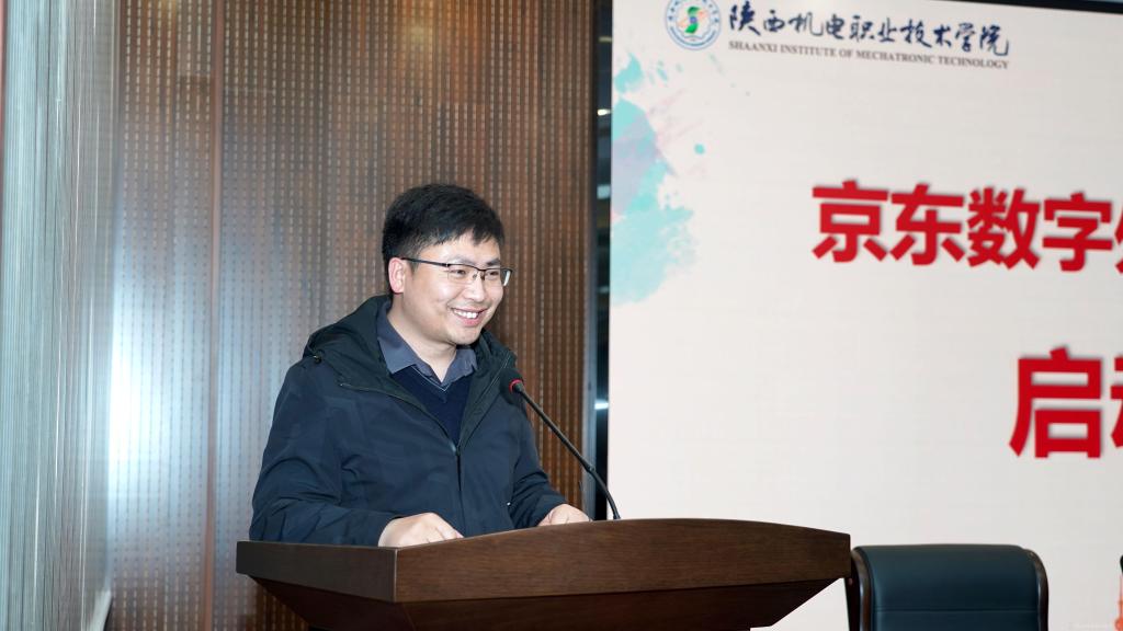 宝鸡市数字经济局副局长任海成在致辞中表示京东集团深入结合区域经济特色,与beat365在线唯一官网在助力本地经济,人才培养层面作出了显著成果,今后将继续加深政校企合作。