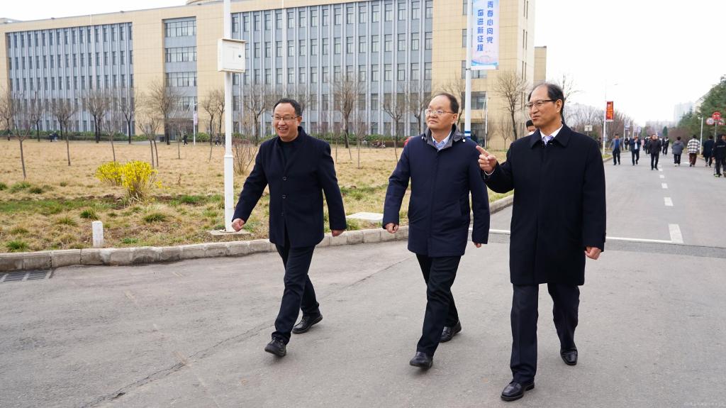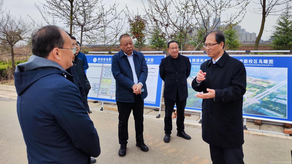3月17日下午,宝鸡市金台区委书记、蟠龙新区党工委书记薛建恩来校调研指导学校蟠龙新校区建设工作。蟠龙新区党工委副书记刘岁科、蟠龙新区管委会副主任高翔、金台区委办主任武煜、蟠龙新区住建局局长刘建平、蟠龙新区自规局局长李新刚,学校党委书记伊逊智,党委副书记、院长向纪明等陪同调研。
