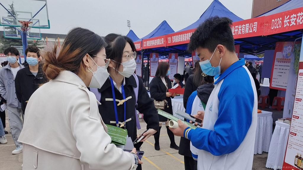 学生与用人单位现场交谈