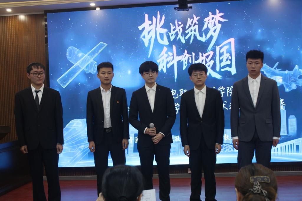 为深入学习贯彻党的二十大精神,引领和激励beat365青年学生弘扬科学精神,营造校园学术科技氛围。4月7日,由校团委、教务处、科研信息处组织的首届“挑战杯”大学生课外学术科技作品竞赛校级决赛在蟠龙校区博学楼111会议室举行。教务处处长白娟娟、基础部副部长满春燕、铁道工程学院副院长卢彦峰、校团委书记杨鹏出席并担任赛事评委,80余名同学观摩比赛。