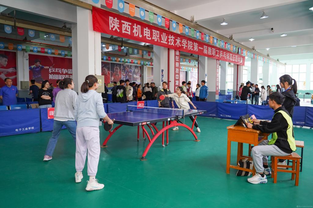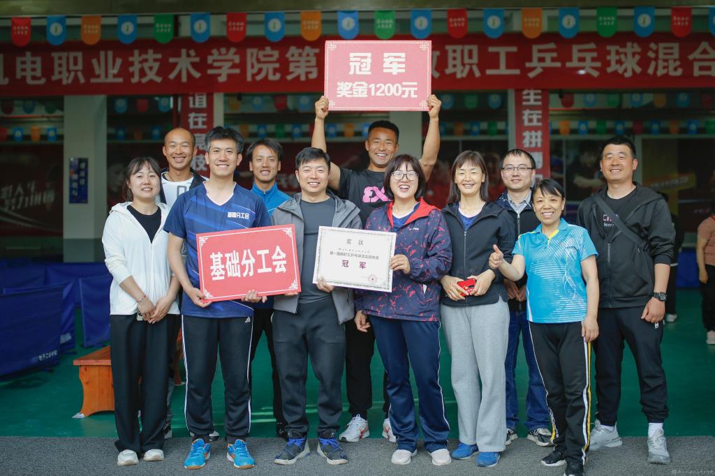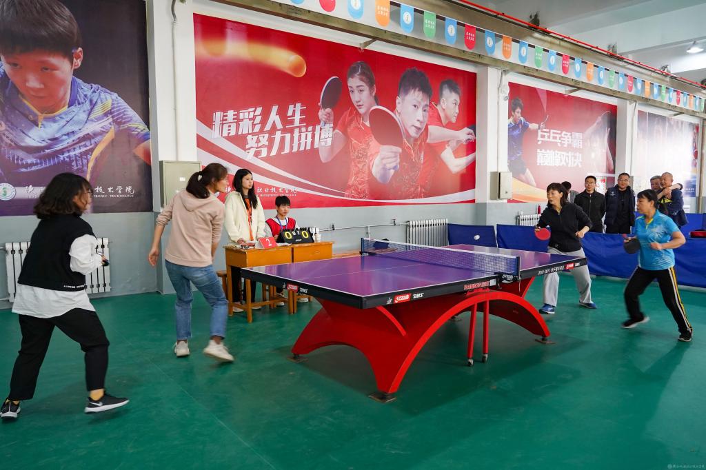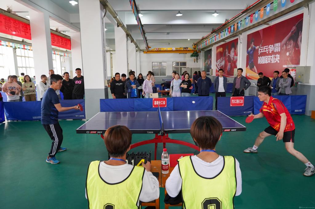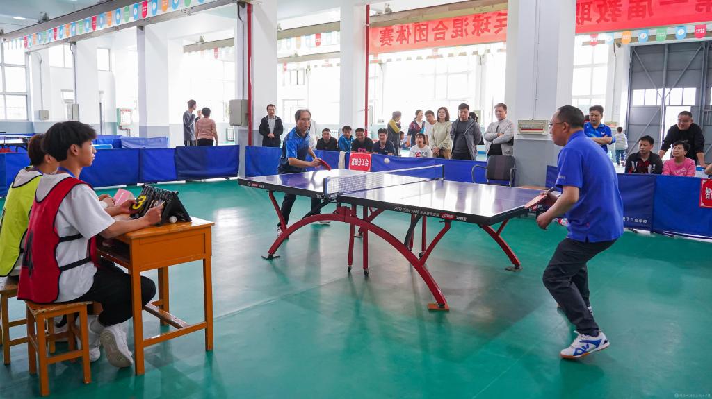 4月15日,由beat365在线唯一官网工会主办、体育部协办的第一届教职工乒乓球混合团体赛(决赛)在宝福路校区乒乓球馆举行,人事、基础、后勤基建、招生就业、宣传纪检、交通运输、行政、智能制造以及学工分工会等9支代表队参加第二阶段赛事。