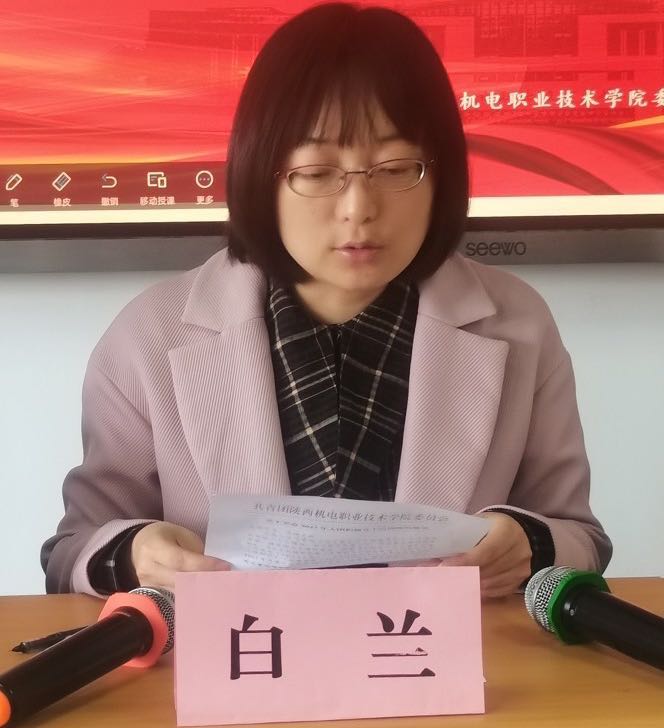(智能制造学院团总支书记白兰宣读《关于举办2023年入团积极分子培训班的通知》)